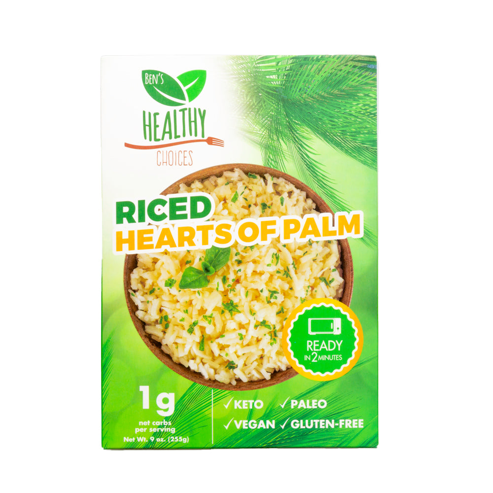 Riced hearts of palm is a unique and healthy alternative to traditional rice made from the inner core of certain types of palm trees. Hearts of palm are the tender, cylindrical, edible parts harvested from the center of the palm tree. They have a mild, slightly nutty flavor and a crunchy texture.